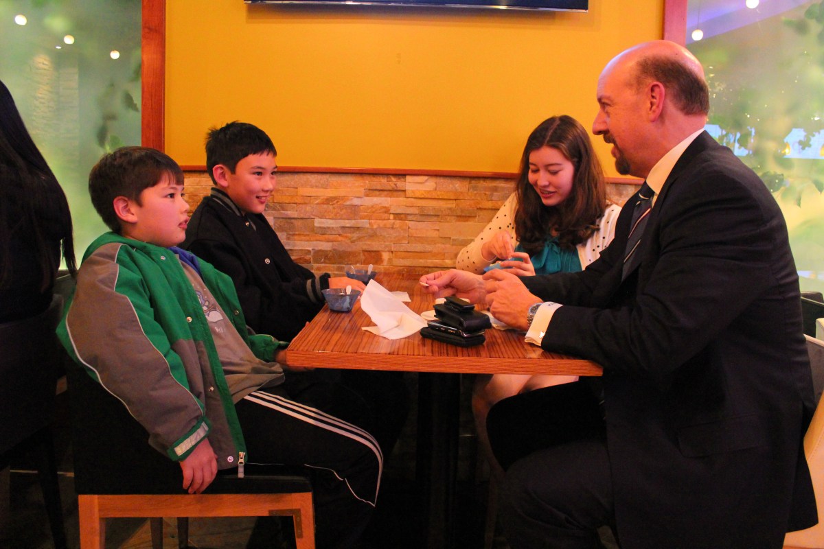 My brother-in-law entertains the boys and his daughter at Breeze Cafe