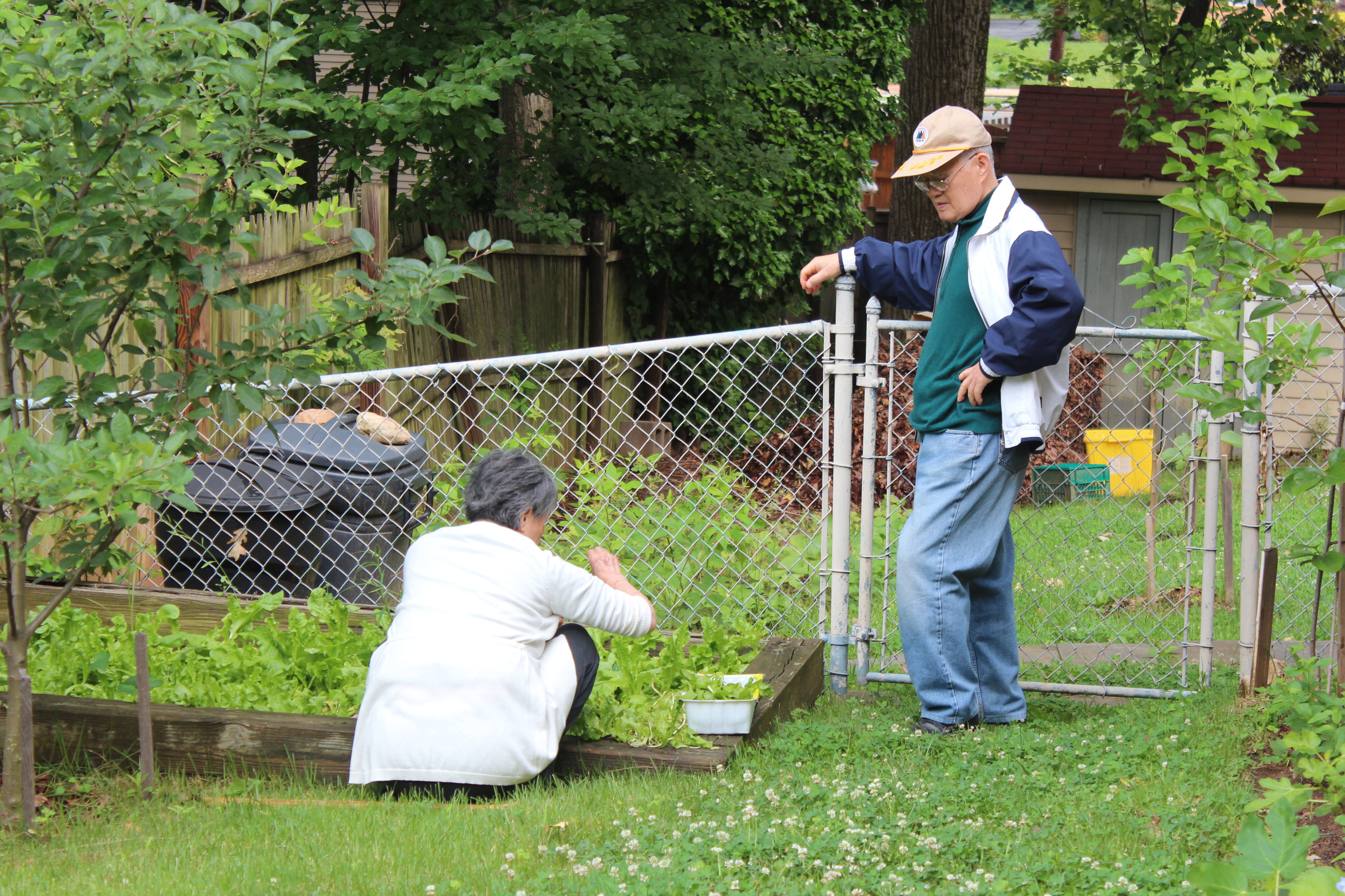 Harvesting lettuce for lunch.