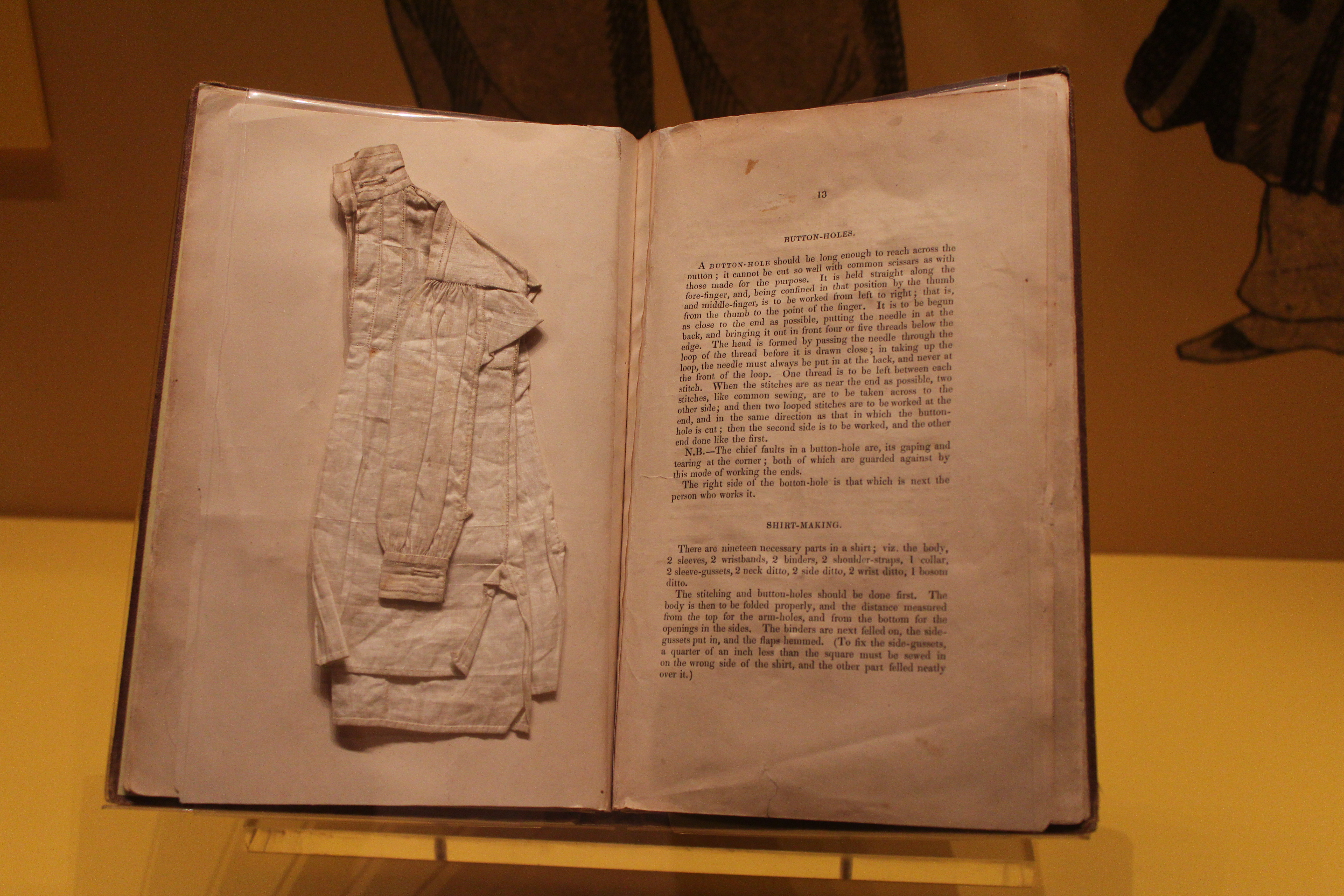Instructions on Needle-work and Knitting with doll-sized outfits interspersed throughout the pages as examples. This book was designed as an instructional textbook for girls in a religious charity school.